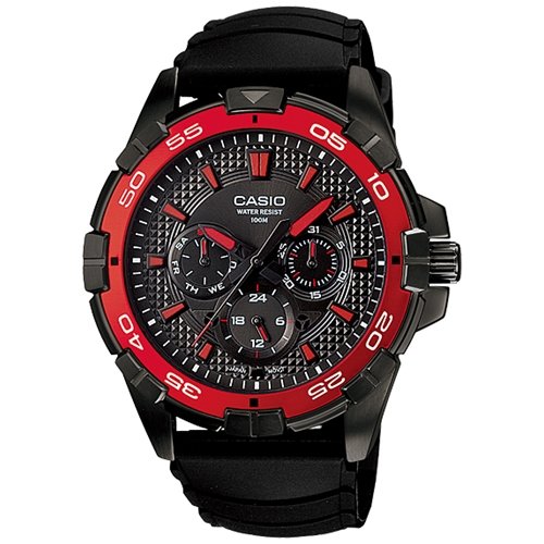 Time to upgrade to a cool, modern look. This Casio watch has a black dial set in a sleek stainless steel case. The resin is finished with a buckle. It's a great casual accessory that's versatile enough to wear every day.